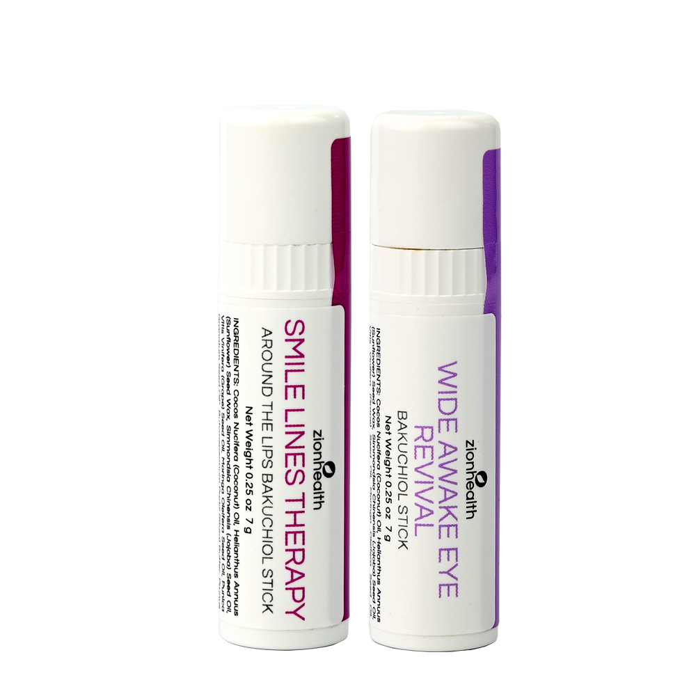 Our Wide Awake Eye Revival Stick and Advanced Smile Line Treatment Set offer a powerful, natural approach to targeting the delicate skin around the eyes and mouth. Both formulas feature bakuchiol, a gentle alternative to retinol, promoting cell turnover and reducing the appearance of fine lines and wrinkles. The Eye Revival Stick hydrates and brightens the under-eye area with soothing botanicals, while the Smile Line Treatment nourishes and replenishes with a blend of moringa and bitter cherry seed oils providing the care your face deserves in a convenient, precise application.